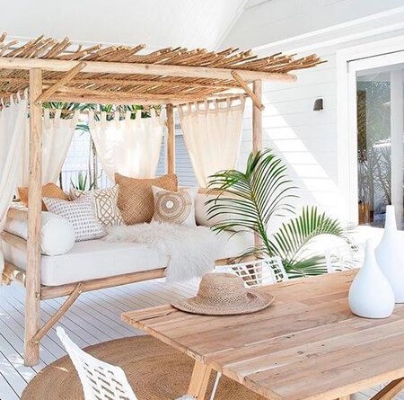 Se han de amueblar con mimo pensando en los momentos de relax, muchos cojines, mesas de madera, hierro, complementos, bambú.