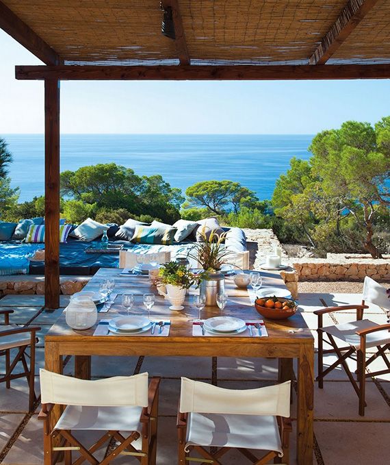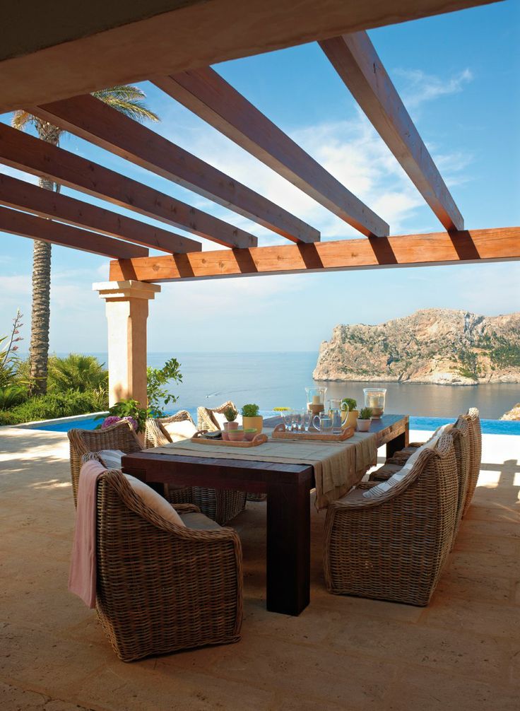 Esta casa mediterránea, cuenta con muros gruesos encalados y una pérgola de madera que resiste inmejorablemente el paso del tiempo.