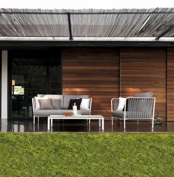 El amueblamiento de estos espacios ha de hacerse con muebles especialmente tratados que resistan el exterior, preparados para el sol, la temperatura y el agua.
