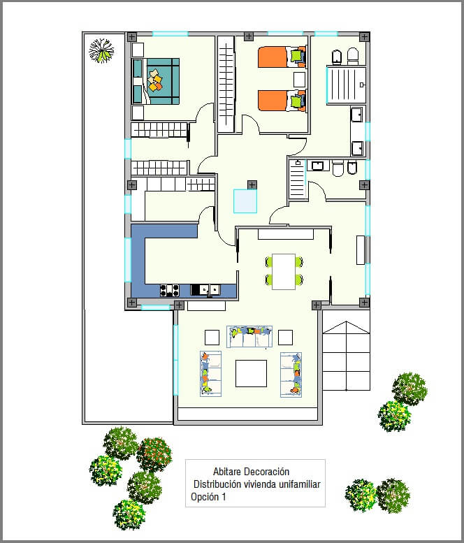 En este post hemos visto un ejemplo de distribución de casas de una planta de 150 metros cuadrados y si este es tu caso o de una superficie menor, de 120 m2, 100 m2 con 3 dormitorios o cuatro dormitorios, sencillas, pequeñas, grandes.